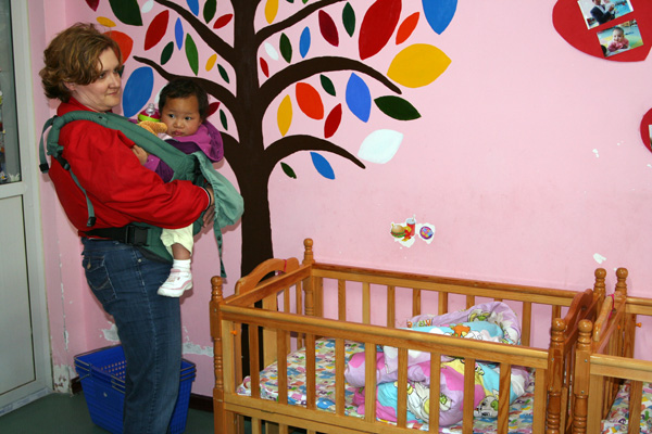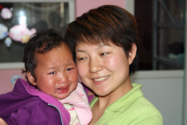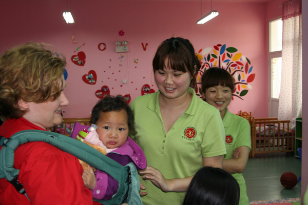 After we returned to the hotel to drop off the other family, we left in the van for Nanyang to visit the orphanage and apply for her passport. Nanyang is about a 3 1/2 drive away from Zhengzhou. We arrived at the orphanage at about 1:00 PM. The orphanage officials were very gracious to show us her beginnings. We met the nannies that work there and were very excited to see Li Jie! It became evident very quickly that she was well loved.