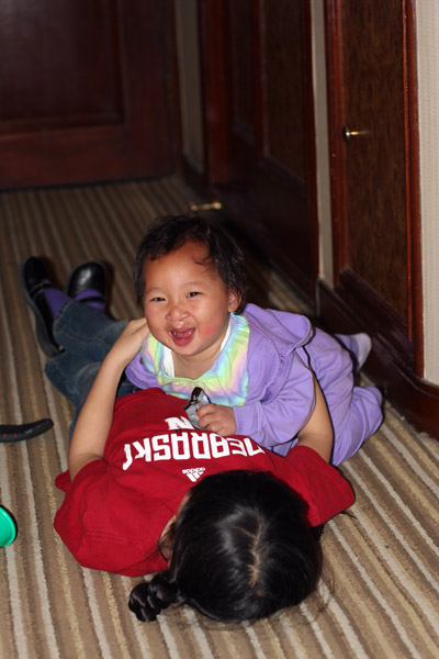 Dayna is really stepping it up as jie jie, or big sister. we can't begin to tell you how sweet it is to watch them play together, or to watch her feed Annie.