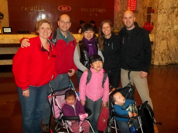 Once we were on the plane, things went downhill for Alaina. We were not sitting together, and traded seats with our travel partners. This put Alaina (with Annie on her lap) one row behind Dan & Dayna. The flight attendants were very pushy, grabbing the boarding passes from Alaina and telling her we were in the wrong seats. Once they finally let it go, they started yelling at Alaina because she was holding up the people trying to board. Never mind the fact that the man in the center seat wasn't moving so she could get to the window with a baby, diaper bag and purse in tow. She was all but shoved into her spot. From that point, the flight got incredibly hot with no air movement. Alaina was starting to feel pretty ill from the lack of air. When the food came, Alaina passed hers up for Dan to hold until we could play "pass the baby." When Dan finished, Annie sat with him so Alaina could eat. When she was done, the flight attendants had already gathered the lunch trays and boxes. Alaina asked for them to take her box, and was brushed off and left holding her trash until the plane landed. Needless to say, at least one person in our family was more than happy to be done with Shenzhen Airlines. And we're ALL happy to be in Guangzhou.