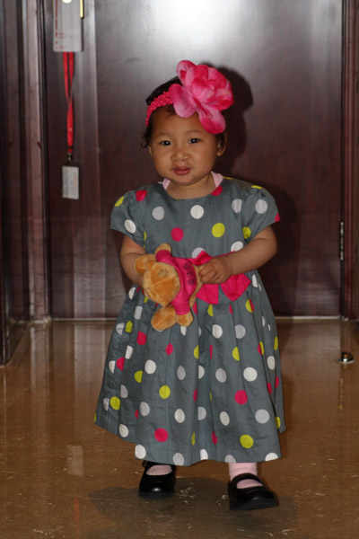 As our shopping trip wound to an end, Alaina's foot was bothering her again. So we caught a cab back to the hotel, where we all pretty much crashed. A really fun side of Annie is starting to come out. She will grab your face and give you kisses...about ten in a row! Then she'll giggle. She loves to be tickled. She's also always wanting to be where the action is. Unlike Dayna, Annie's not much of a snuggler. We'll have to find different ways to connect with her.