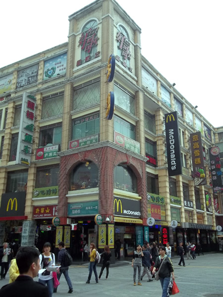After we made our purchases, we continued with Grace and the Yang family to an outdoor shopping center, translated "Up Down Nine." To Alaina, it seemed like the Guangzhou equivalent of Times Square. (She's never been there to truly compare, but it was pretty big.) We didn't stay too long, but Dayna was excited to buy a hair clip at the Chinese equivalent of Claire's.