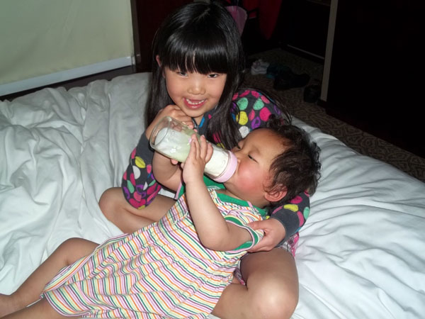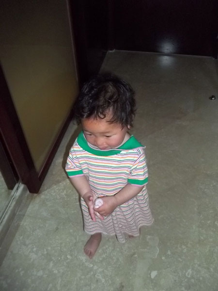 We said our farewells to our travel group. The Stokes family left this evening, and we're leaving so early in the morning that no one else will be awake. The hotel is sending us off with boxed breakfasts, so we won't be able to enjoy the grand buffet one last time. We also discovered this afternoon that a child's meal had been ordered for Annie. She is unable to eat much table food at this time, so we went in search of some baby food to take with us. Unfortunately, while the hotel has horribly overpriced diapers (the equivalent of $6 USD for 12 diapers), they have no baby food. Dan & Dayna had to take a cab to WalMart to pick up something for Annie to eat on the plane. Meanwhile, Alaina and Annie experienced their first (and last) Chinese McDonalds for this trip. Nothing spectacularly odd: chicken nuggets, fries and a Coke.