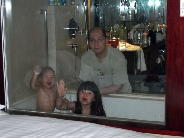 The last bit of excitement we've had today involves the loss of another one of Dayna's top teeth. It started wiggling on the airplane here, and just fell out. We hear that that Easter Bunny visited our house while we were gone. Now we need to find out if the Tooth Fairy will come to China, or if we'll have to wait for her to visit when we come home.
